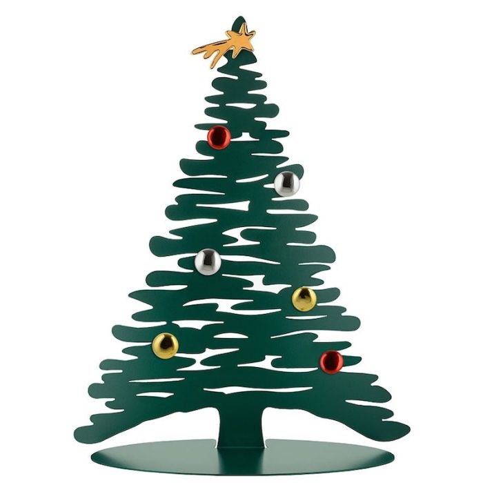 Albero Alessi Bark verde 45 cm in acciaio rivestito in resina epossidica con decorazioni magnetiche.