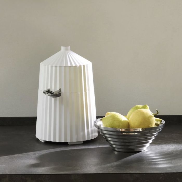 Lo spremiagrumi elettrico Plissé di Alessi, disponibile su Gagliardi Shop, è l'ennesima dimostrazione di come Michele De Lucchi riesca a trasformare un oggetto comune in una piccola architettura domestica. Con le sue fitte pieghe che evocano il movimento di una gonna plissettata, questo spremiagrumi non è solo un elettrodomestico efficiente, ma un vero e proprio pezzo d'arredo che dona carattere e ritmo visivo al piano della tua cucina.