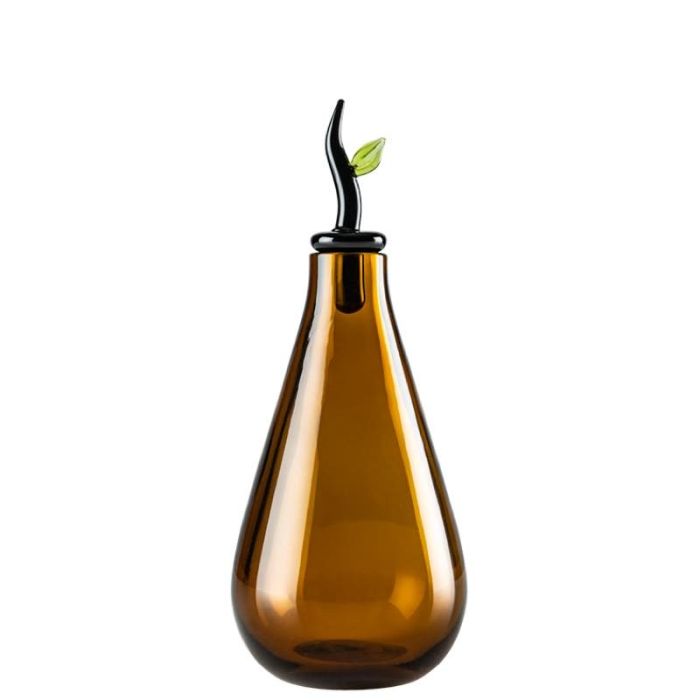 Ampolla VENINI in vetro di Murano color Ambra con tappo a Foglia. Design by Laura de Santillana, Made in Italy.