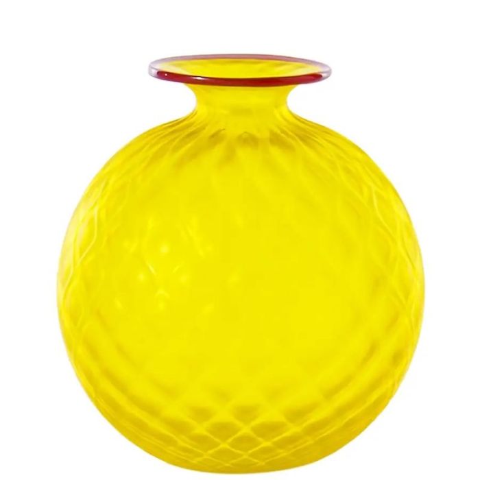 Balloton Venini Giallo Fluo filo Rosso Vivo, Vaso palla in vetro di Murano disponibile in varie dimensioni. Made in Italy.
