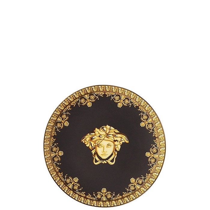 Piattino Versace Baroque Black 10 cm in porcellana decorata.