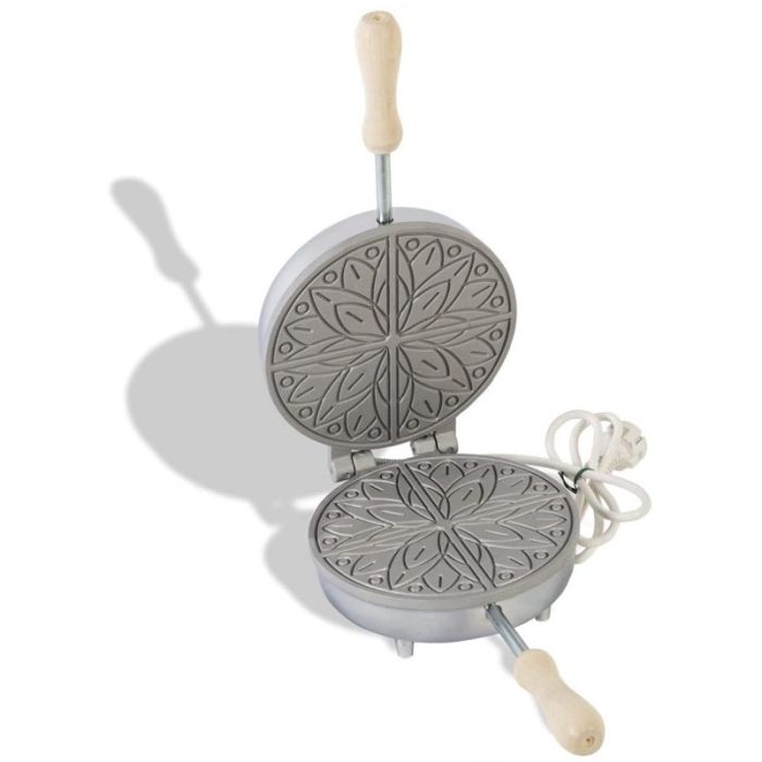 Biscottiera elettrica rettangolare CBE sottile per produrre croccati cialde da mantenere intera o dividerla in 4 spicchi a forma di fiore. Spessore della cialda sottile, 2,5 mm. Stampo per biscotti elettrico con termostato e protezioni. Peso 3 kg, 600 watt. 220 volt.