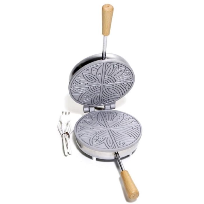 Biscottiera elettrica rettangolare CBE sottile per produrre croccati cialde da mantenere intera o dividerla in 4 spicchi con motivi diversi. Spessore della cialda sottile, 2,5 mm. Stampo per biscotti elettrico con termostato e protezioni. Peso 3 kg, 600 watt. 220 volt.
