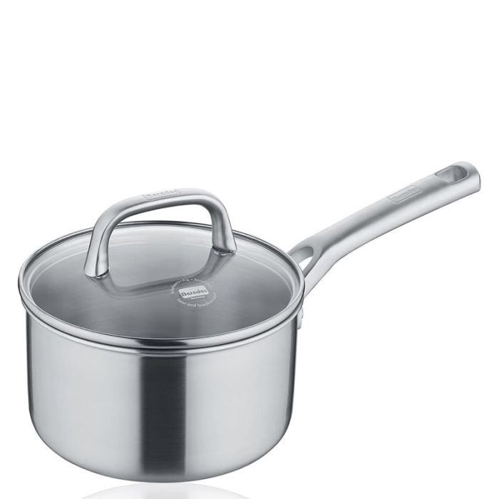 Casseruola 1 manico Berndes Tricion Resist con coperchio in vetro. Pentolino in acciaio con rivestimento antiaderente antigraffio senza PFOA e altre sostanze nocive, adatto a tutte le fonti di calore, incluso l'induzione. Riscaldamento rapido. Dimensioni 16cm, Capienza 1,8 litri. Adatto per il Forno fino a 250°. Manico in acciaio inox con doppia rivettatura.