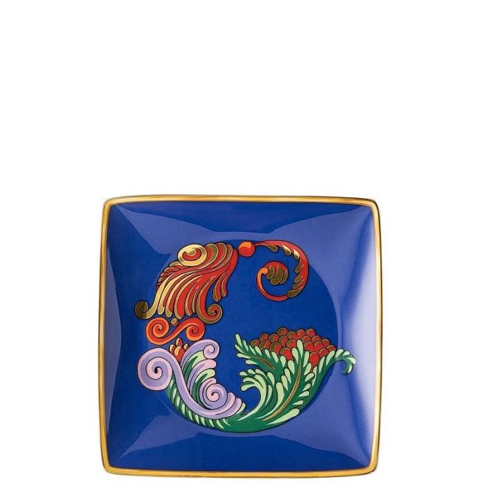 Piattino quadrato blue Versace lettera G in porcellana Rosenthal. Collezione Alfabeto di Natale.