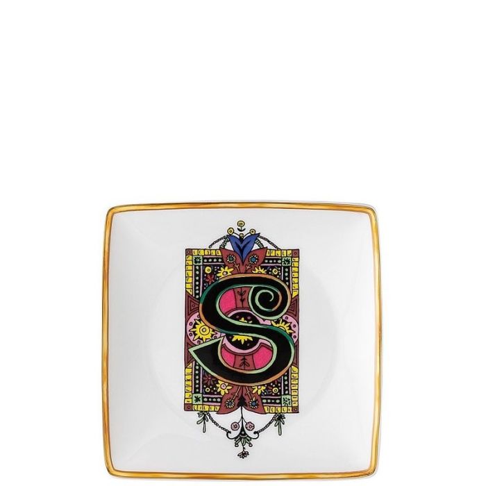 Ciotolina quadrata Lettera S Versace Alphabet in porcellana decorata con metalli preziosi. Made in Germany.