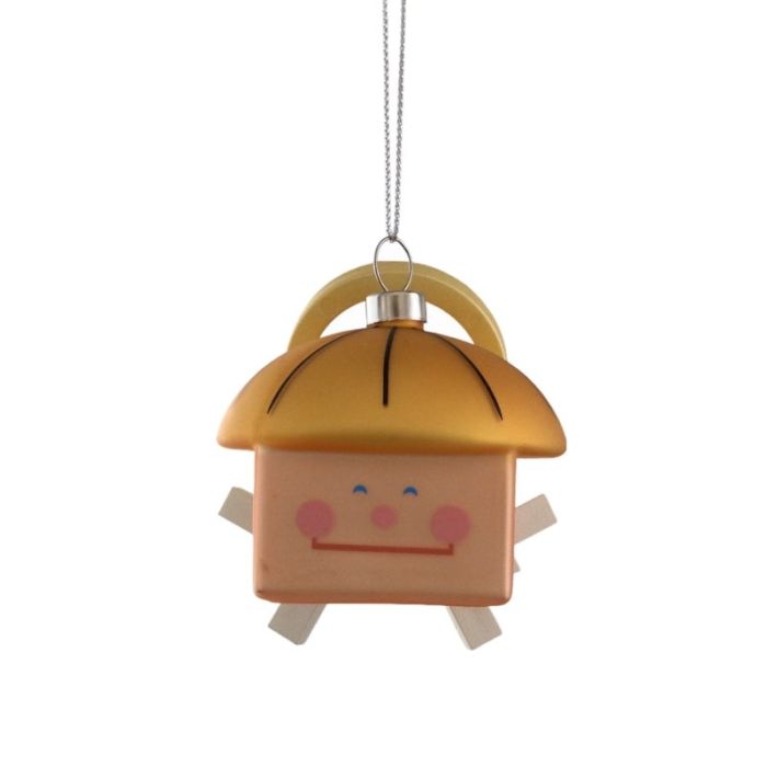 Ornamento ALESSI Quadrangelo in vetro decorato a forma di Angelo. Un'Appendino Natalizio con il design goliardico ALESSI