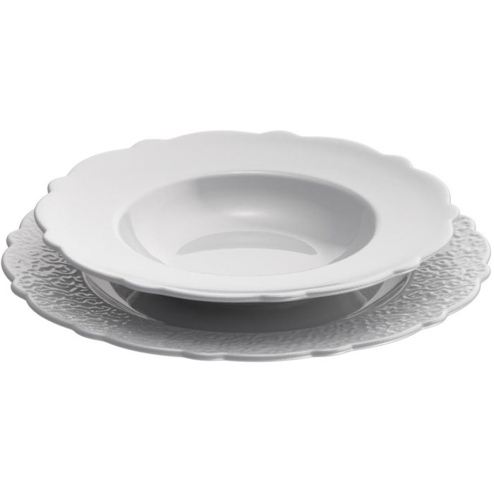 Piatti ALESSI Dressed 12 pezzi per 4 persone in porcellana bianca con decoro a rilievo.