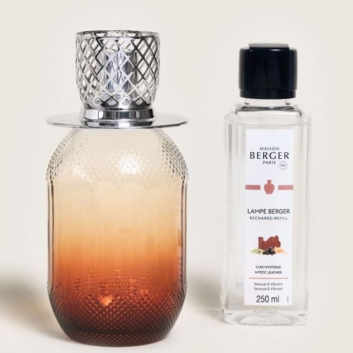 Lampe Berger Evanescence Fauve in vetro con profumo Mystic Leather. Disponibile in vari colori. Purifica l'aria e profuma, Made in France.