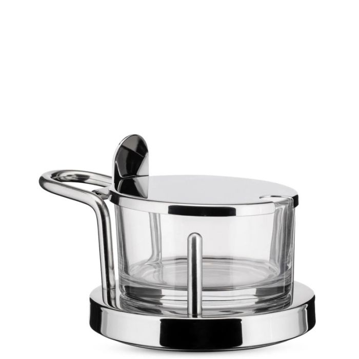 Formaggiera ALESSI in acciaio inox lucido con cristallo. Design Ettore Sottsass
