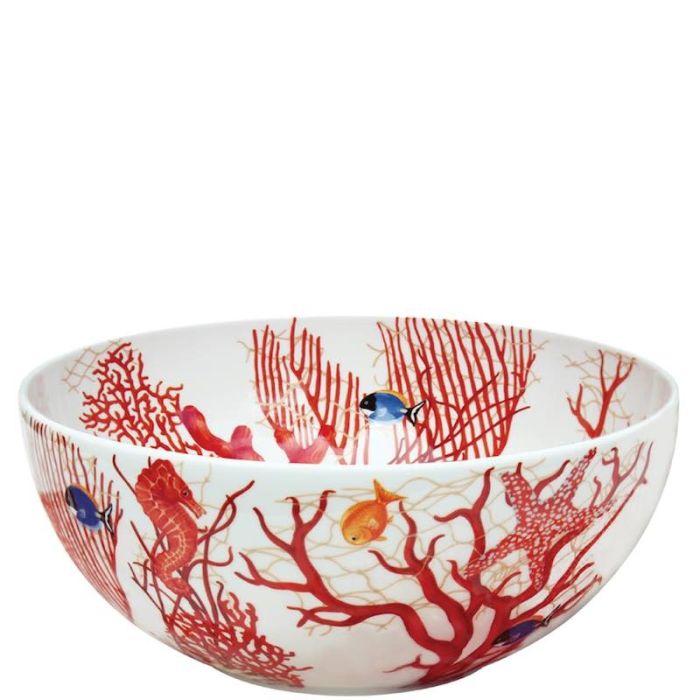 Ciotola grande per insalata Taitù decoro Mare in porcellana Fine Bone China.