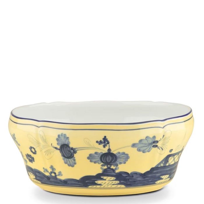 Ciotola per Insalata Ovale Oriente Italiano Ginori in porcellana decorata a mano. Insalatiera o ciotola decorativa, Made in Italy. Disponibile in 10 colorazioni: Malachite, Cipria, Citrino, Albus, Vermilio, Bario e nei colori Iris, Porpora, Azalea e Pervinca con bordo dorato.