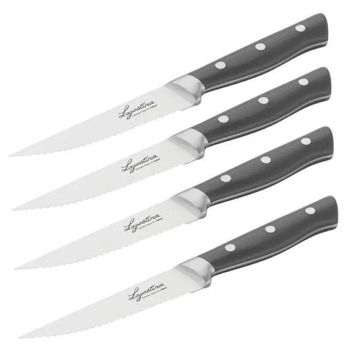 Il set di 4 coltelli da bistecca Virtuoso, realizzato dallo storico Brand Lagostina e disponibile su Gagliardi Shop, è lo strumento ideale per chi cerca affidabilità e potenza di taglio. Questi coltelli si distinguono per la loro lama seghettata da 11 cm, appositamente studiata per incidere con facilità le fibre della carne cotta alla griglia, garantendo un'esperienza di taglio fluida senza dover esercitare una pressione eccessiva.