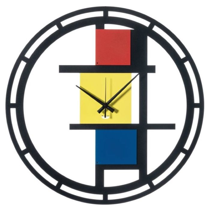 Orologio da Arredamento Mondrian di Arti & Mestieri in ferro tagliato a laser 70 cm. Un Orologio da Parete moderno tributo a Piet Mondrian.
