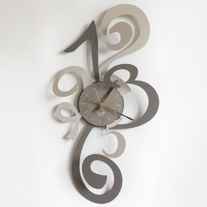 Orologio da parete Arti & Mestieri fango e nocciola modello Truciolo tonalità grigio. Made in Italy.
