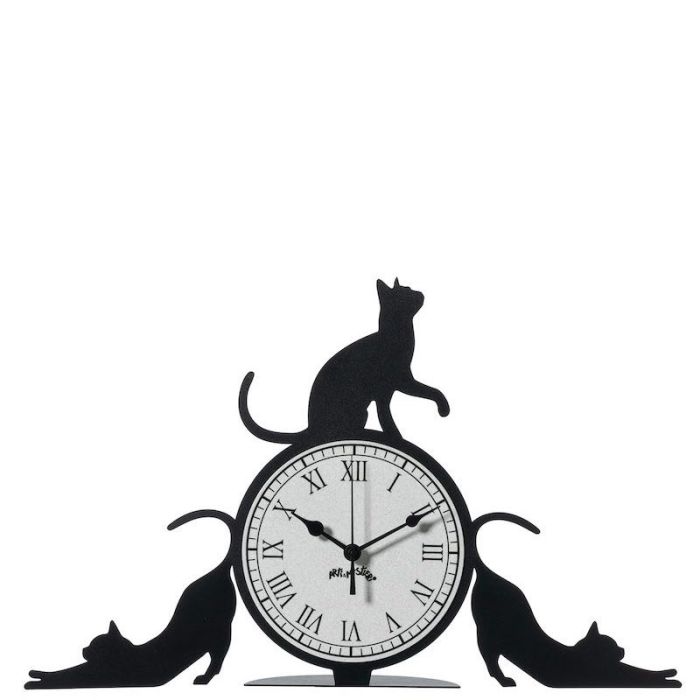 Orologio da Appoggio Cattitude di Arti & Mestieri in ferro colorato. Un bellissimo orologio da tavolo per gli amanti dei gatti.