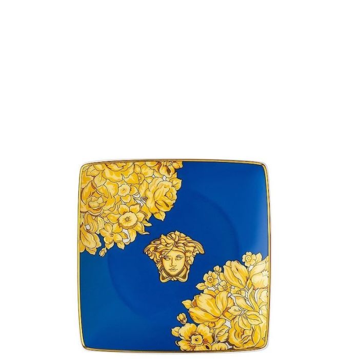 Piattino Quadrato Blue Medusa Rhapsody Versace in porcellana decorata. Made in Germany.