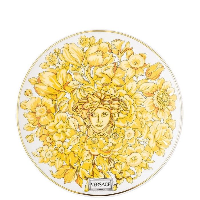 Piatto piccolo 17cm Versace Medusa Rhapsody in porcellana Rosenthal, Made in Germany. Collezione Versace con fiori oro.