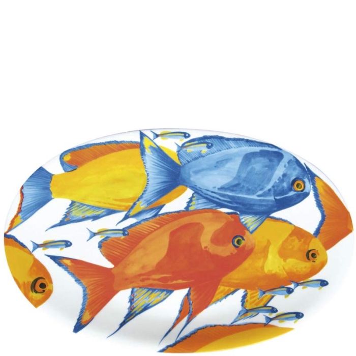 Vassoio ovale per servire Taitù in porcellana Fine Bone China decoro Caraibi con pesci colorati