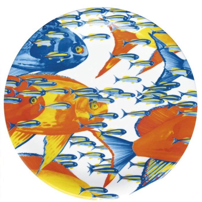 Vassoio da portata tondo Taitù in porcellana Fine Bone China decoro Caraibi con pesci colorati
