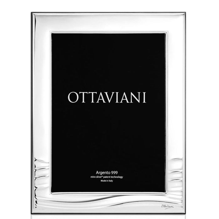 Cornice Portafoto Ottaviani Mare in metallo argentato (Miro Silver), una esclusiva tecnica di lavorazione dei metalli preziosi. Retro in legno vengo. Disponibile in varie dimensioni, possibilità di disporlo sia in verticale che in orizzontale.