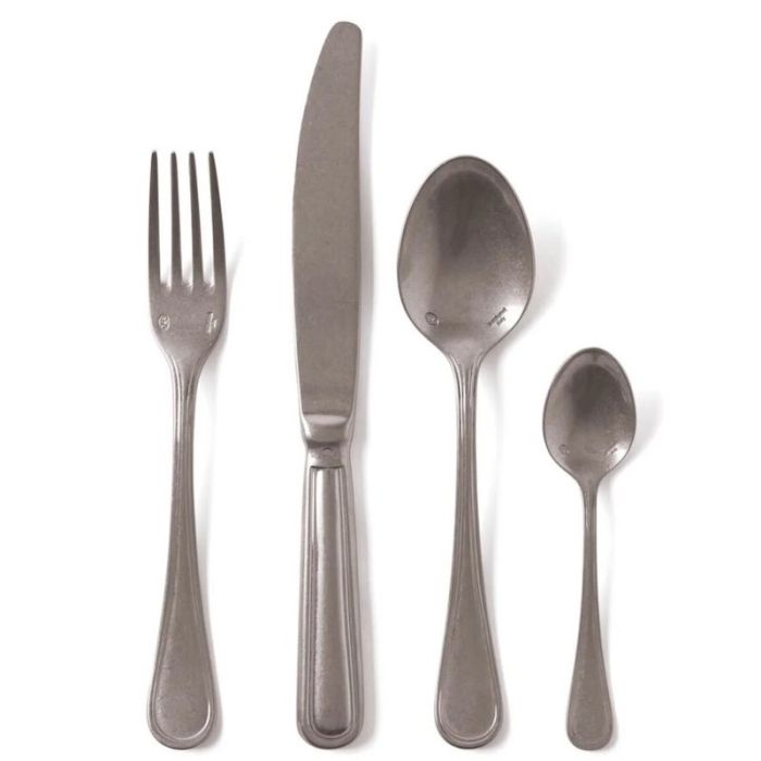 Questo trattamento non è solo estetico ma funzionale: rende le posate estremamente resistenti ai graffi e all'usura quotidiana, nascondendo i segni del tempo e rendendole ideali sia per le occasioni speciali che per l'uso di tutti i giorni in ambienti industrial-chic o shabby.