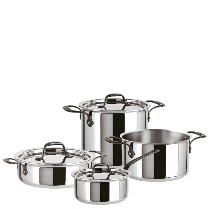 La batteria Home Chef di Sambonet, disponibile su Gagliardi Shop, porta la tecnologia delle cucine professionali direttamente a casa tua. Dimentica le pentole con il fondo applicato: qui l'intera struttura è un corpo unico multistrato.