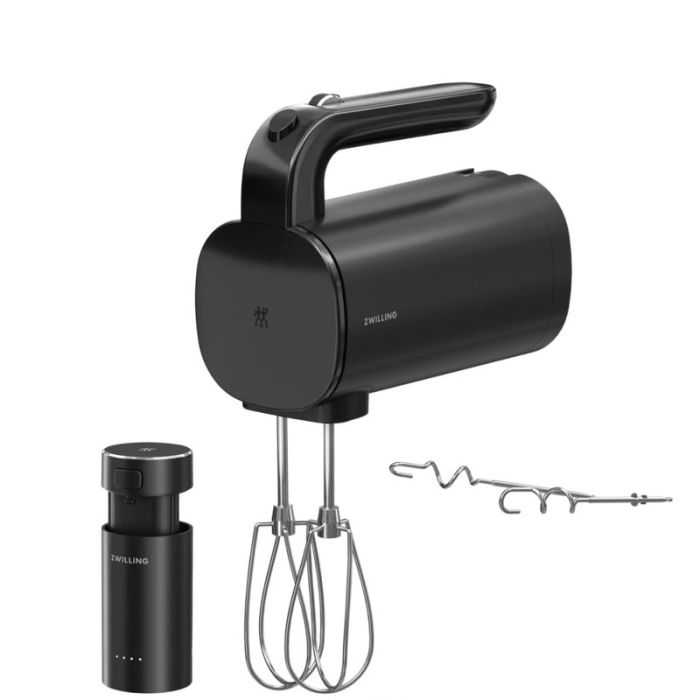 Sbattitore Zwilling Xtend Cordless con batteria ricaricabile, base di ricarica inclusi e 2 tipi di fruste incluse. Potente batteria da 12 V che permette una maggiore libertà in cucina. Compatibilità totale della batteria con tutti gli altri elettrodomestici della linea XTEND. Fino a 120 minuti con una sola carica (l'autonomia può variare a seconda della ricetta, degli accessori e dello stato della batteria). Caricabatterie rapido con funzione power Bank aggiuntiva.