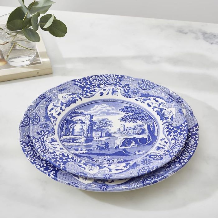 Servizio Tavola Blue Italia Spode 12 pezzi in porcellana decorata. Set composto da 4 piatti piani, 4 piatti fondi e 4 piatti dessert.