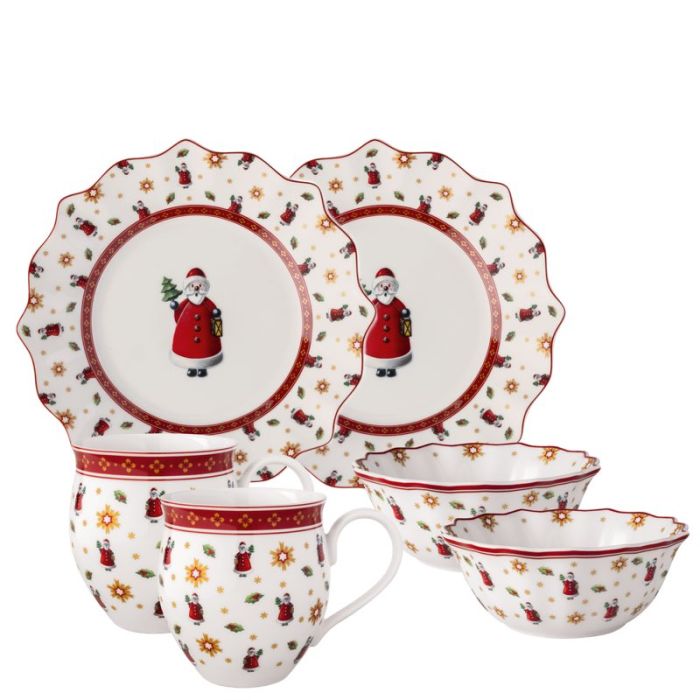 Set Colazione 6 pezzi Toy's Delight Babbo Natale in porcellana del Natale Villeroy & Boch. Set composto da 2 piatti dessert, 2 tazze mug e 2 coppette dessert.