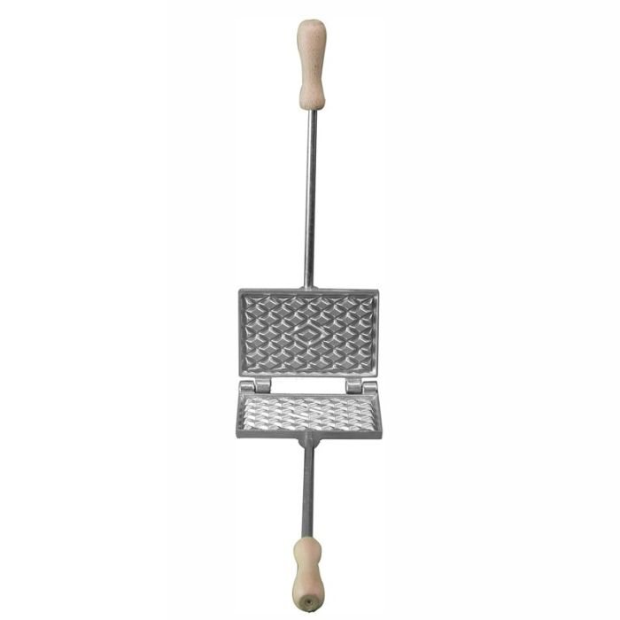 Biscottiera rettangolare CBE per cottura su fiamma libera, specifica per produrre la classica ferratela morbida e alta (neola o pizzetta). Spessore cialda: 5 mm. Dimensioni 10X15 cm, 0,8 kg.