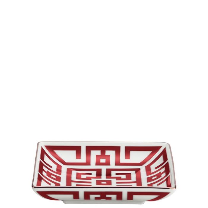 Svuotatasche Ginori piccolo collezione Labirinto in porcellana bianca decorata con metalli preziosi. Iconico disegno di Giò Ponti disponibile nei colori Labirinto Scarlatto, Nero e Zaffiro. Made in Italy.