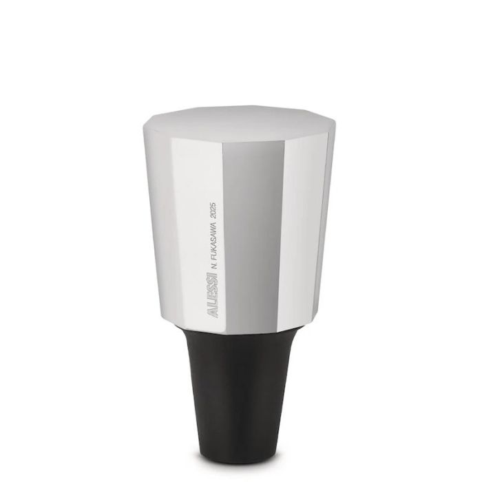 Tappo per bottiglie di vino ALESSI Eugenia in acciaio inox lucido. Una forma Decagonale per un design distintivo che offre inoltre una presa comoda con un'inserto conico in silicone che si adatta perfettamente al collo della bottiglia creando una chiusura aderente e stabile.