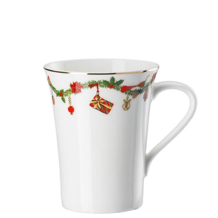 Bicchiere con manico Hutschenreuther Nora Christmas in finissima porcellana bone china decorata.