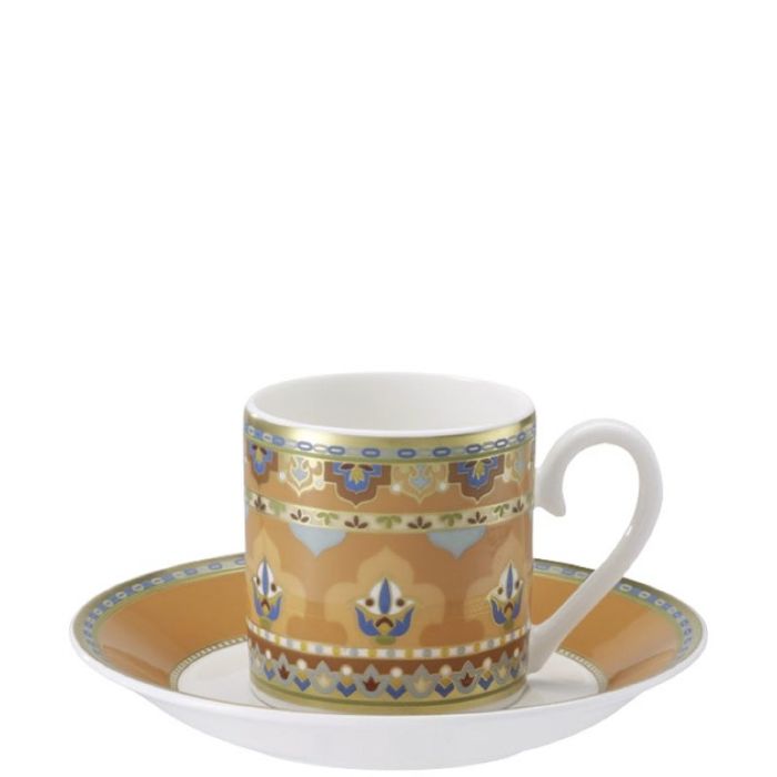 Tazzina Caffè con piattino Villeroy & Boch Samarkand arancione in finissima premium bone porcelain decorata con metalli preziosi. Made in Germany.