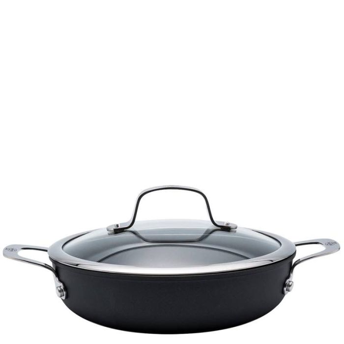 Corpo in alluminio ad alto spessore. Rivestimento interno Keravis Ti-X rinforzato al titanio. Rivestimento esterno antimacchia, lavabile in lavastoviglie. Fondo radiant, adatto a tutte le fonti di calore compreso l'induzione. Manicatura in acciaio, studiata per ritardare l'effetto di surriscaldamento.