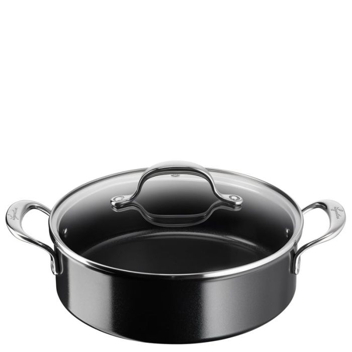 Casseruola bassa Lagostina Desideria in alluminio riciclato al 100% e antiaderente ceramicato Inoceram che assicura prestazioni durature. Antiaderente privo di PFOA, piombo e cadmio per una qualità di cottura e sicurezza. Adatto a tutte le fonti di calore, incluso l'induzione.