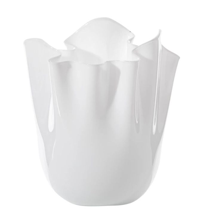 Il colore Bianco nella tradizione vetraria di Murano ha un nome antico e nobile: Lattimo. Nato nel XV secolo per imitare la preziosa porcellana cinese, questo vetro opaco e latteo è perfetto per esaltare le linee morbide del Fazzoletto Venini.