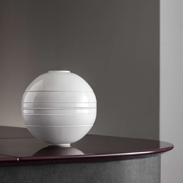 Realizzata in porcellana premium resistente e brillante, La Boule White è progettata per durare nel tempo mantenendo inalterato il suo candore. La garanzia di un marchio storico come Villeroy & Boch assicura una resistenza superiore alle scheggiature, rendendo il set adatto anche all'uso quotidiano, oltre che per occasioni formali. Che sia esposta come oggetto d'arte su una mensola o utilizzata per una cena romantica, La Boule White