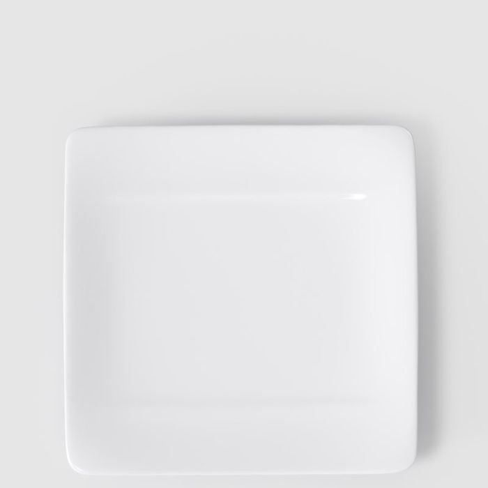 Come il fratello maggiore (il piatto piano da 27 cm), anche questo piatto colazione gioca sui contrasti. La forma è decisamente quadrata, ispirata al design geometrico degli anni '50, ma gli angoli sono dolcemente smussati. Questo dettaglio non è solo estetico: rende il piatto più resistente agli urti accidentali sui bordi.