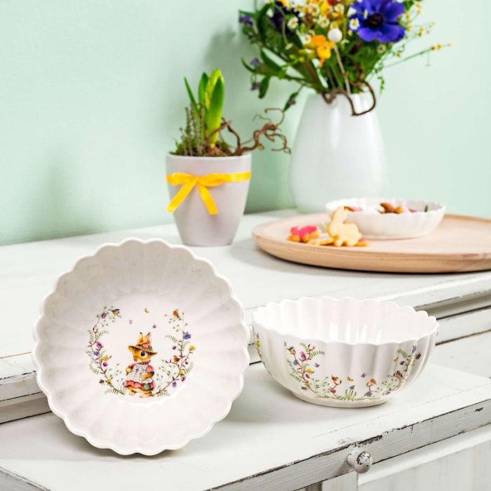 Ogni colazione diventa un racconto con la Ciotola per Cereali Spring Fantasy di Villeroy & Boch, disponibile su Gagliardi Shop. A differenza delle linee puramente floreali, questa collezione ci porta direttamente nel mondo delle fiabe: al centro della ciotola, una dettagliata illustrazione mostra i laboriosi coniglietti della famiglia Bunny Tales impegnati a dipingere e decorare le uova per la grande festa.