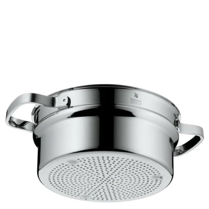 Il Cestello Vaporiera Function 4 da 20 cm è l'accessorio essenziale per chi vuole cucinare in modo sano senza moltiplicare le pentole in cucina. Progettato per integrarsi perfettamente con le casseruole della linea Function 4 (ma compatibile con qualsiasi pentola WMF standard dello stesso diametro), questo inserto ti permette di cuocere delicatamente verdure, pesce e carni bianche preservando vitamine, nutrienti e consistenza.