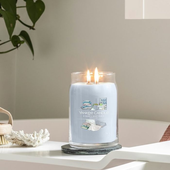 Scopri la versione Signature della fragranza A Calm & Quiet Place. Questa collezione reinventa l'iconica esperienza Yankee Candle con un design moderno ed elegante: il vetro è più pulito, la miscela di cera di soia garantisce un colore vibrante e una bruciatura omogenea, e le etichette artistiche sono dipinte a mano per raccontare la storia del profumo.